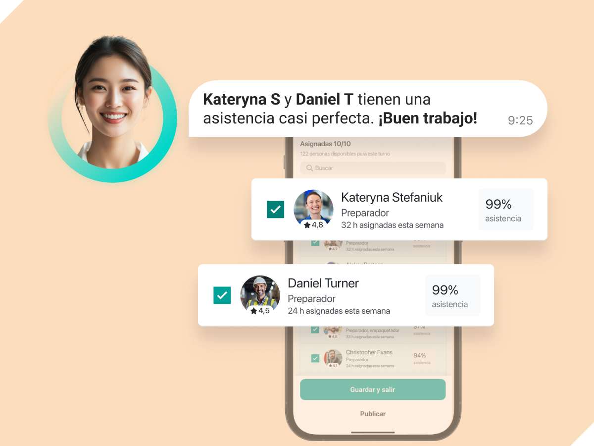 Con el equipo de IA de Job&Talent, llevamos inteligencia y automatización a cada etapa de la gestión de personal. Desde contrataciones más rápidas y planificación más eficiente, hasta mejor asistencia y mayor rendimiento. Nuestros agentes IA ayudan a las empresas a crecer con confianza, reducir costes y aumentar la productividad.
