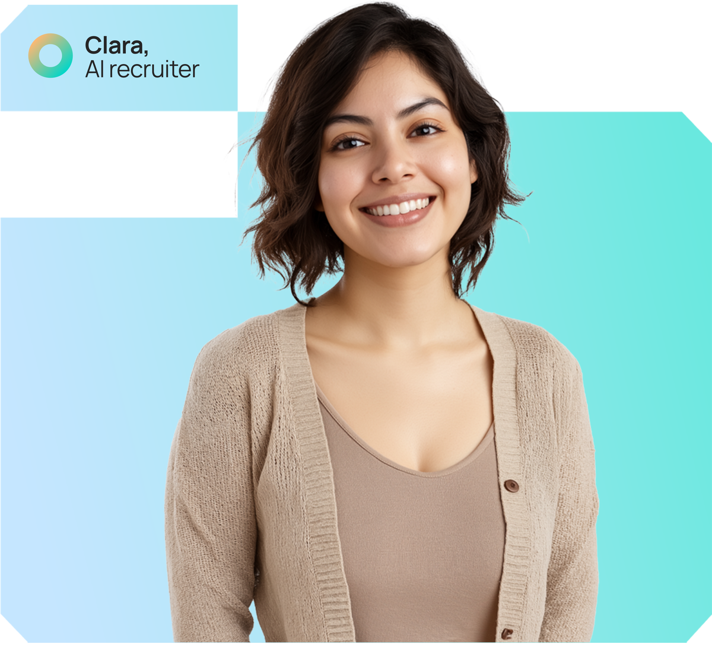 Clara ha demostrado contratar un 68% más rápido que los métodos tradicionales y contrata al 23 % de sus empleados fuera del horario laboral. Su voz es natural, empática e imparcial.