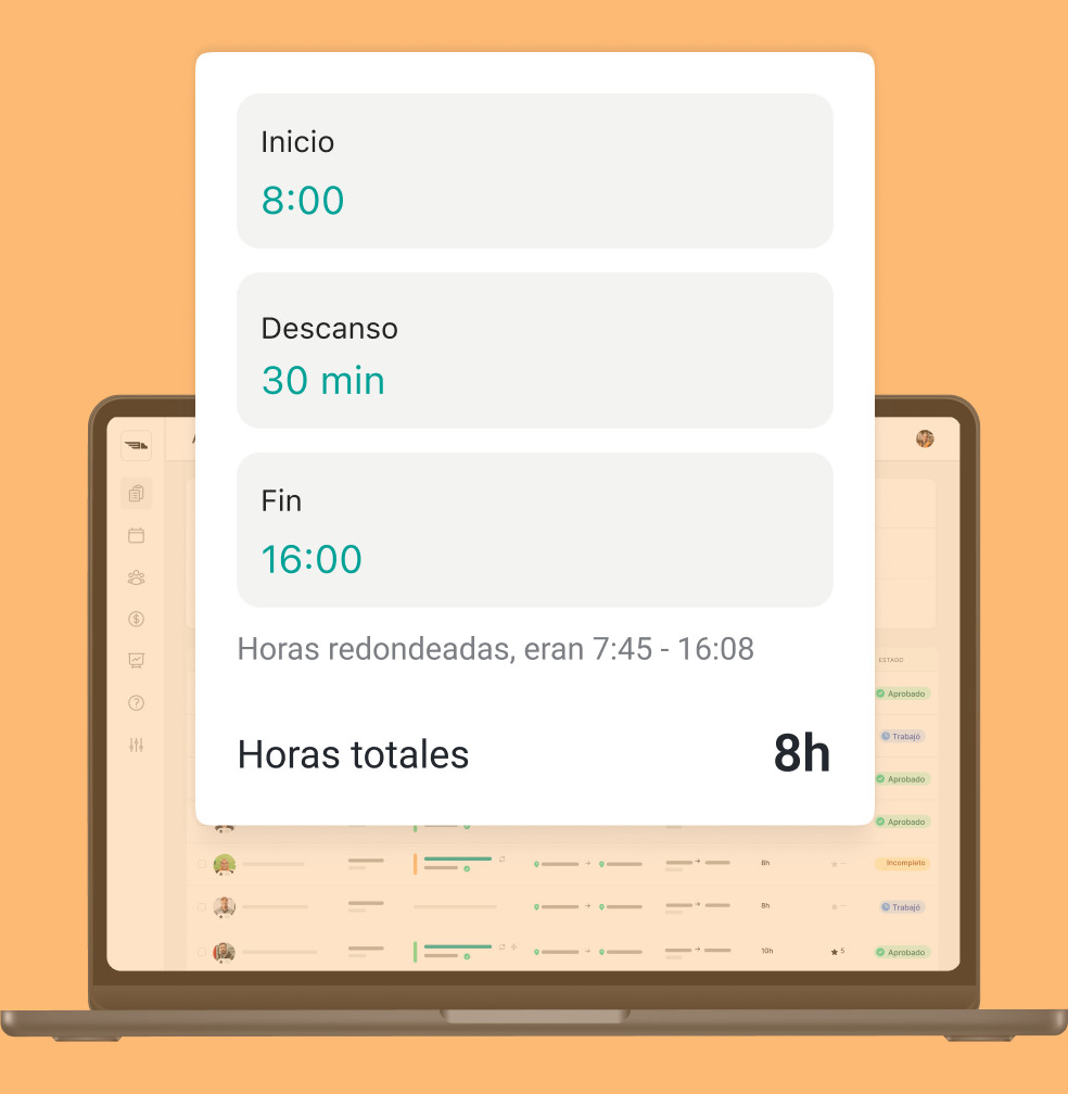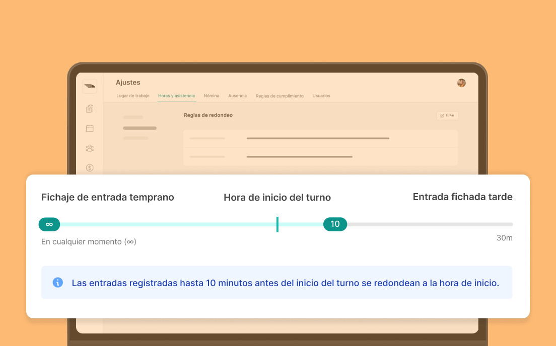 También puedes configurar reglas de redondeo para garantizar que las horas de entradas y salidas corresponden con las horas programadas.
