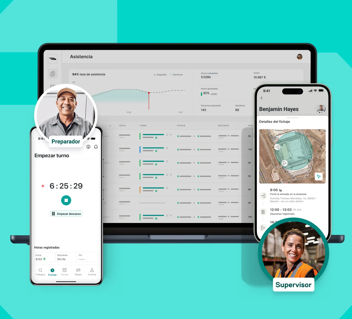 Comienza ya a gestionar tus turnos y registrar las horas de entrada y salida de tus trabajadores sin necesidad de formación ni de utilizar dispositivos adicionales. Simplemente regístrate, descarga la aplicación y empieza a utilizarla. Cuestión de minutos.
