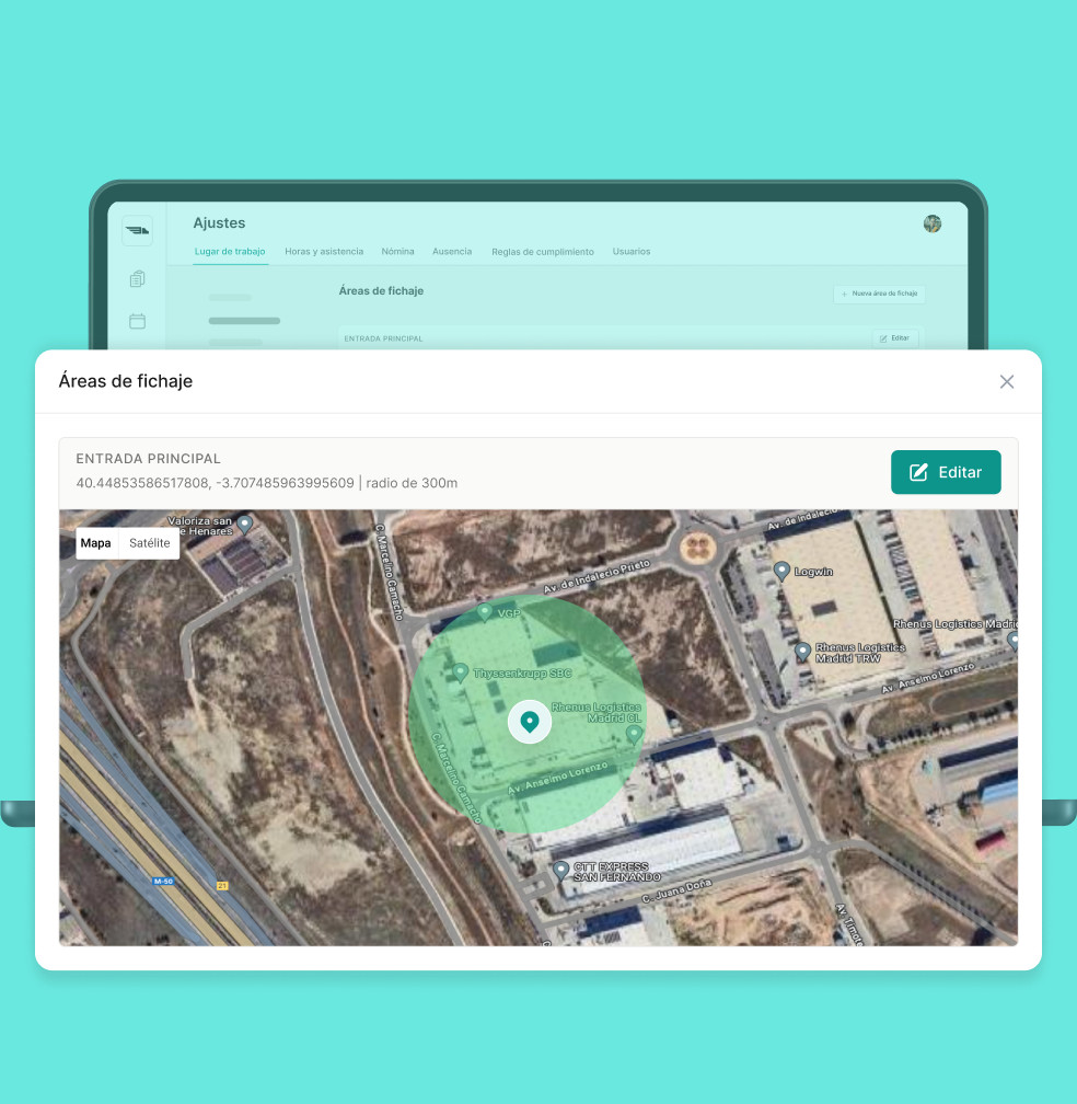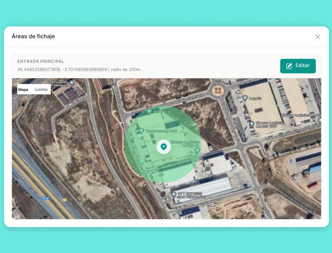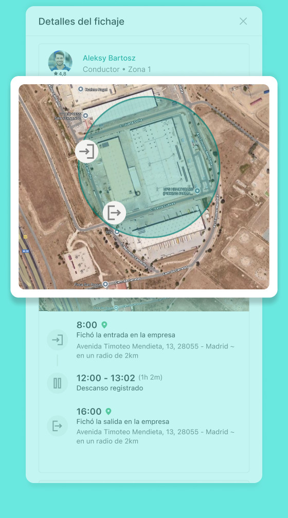 El sistema utiliza sistemas de geolocalización y mensajes de advertencia para evitar el fraude en el seguimiento del tiempo. Una vez activado, si un trabajador intenta registrar su entrada y se encuentra a más de 150 m del sitio, recibirá un mensaje de advertencia que le solicitará que empiece a registrar su entrada cuando esté en el sitio.