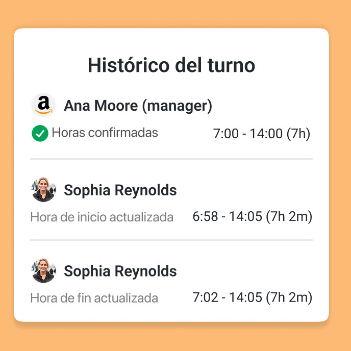 En la app de Job&Talent Business dispones de visibilidad y control total sobre los turnos y las horas de registros. Puedes revisar y editar las horas registradas de cada persona. O, si alguien lo olvida, puedes agregar horas de registro incompletas para reducir la carga de tareas al finalizar la semana.