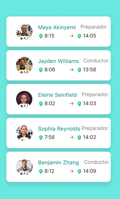 La plataforma también incluye la gestión de turnos, asegurando una gestión cómoda y eficaz. Nuestros productos incluyen una aplicación para los responsables de turno, una plataforma para administradores y una app para trabajadores. Todas están sincronizadas en tiempo real para que todos los actores tengan acceso a la misma información.